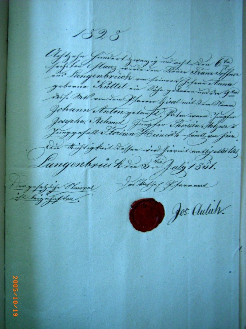 Geburtsurkunde Johann Anton Soffner